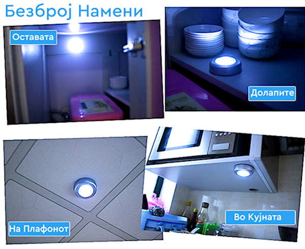 Поставите лампу у креденац, само је додирните и имаћете више него довољно светла. Поставите лампу на степеништу, ноћу  у дечијој соби ако се плаше мрака, користите их у ормару, шпајзи, кухињи, купатилу, тавану….