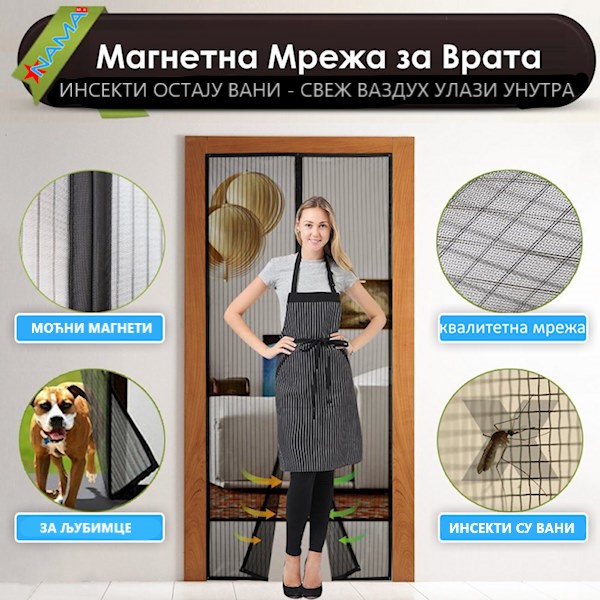 Практична мрежа која се затвара са јаким магнетима прилагодљиве ширине,помоћу које непријатни инсекти остају вани а свеж ваздух улази унутра.