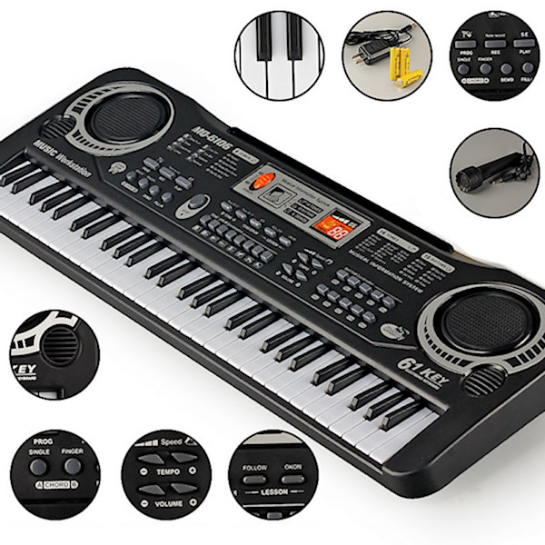Уграђен систем за снимање мелодија и репродукцију, демо опција, лекције, симулација разних инструмената итд…
