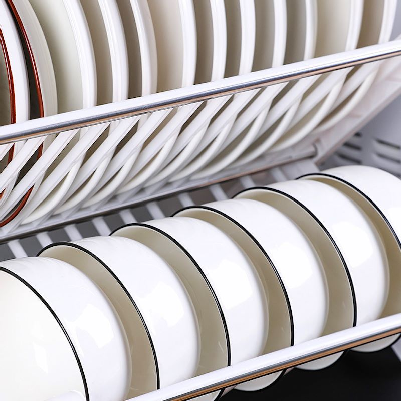 Сталак за судове је направљен од висококвалитетне комбинације нерђајућег челика и ПП материјала, обезбеђујући стабилност и издржљивост. Доступан у белој и црној боји, овај сталак за судове није само функционалан већ и додаје стил и елеганцију вашем кухињском простору.